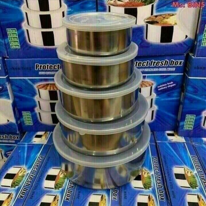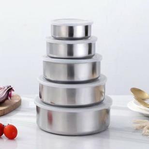 BÁT INOX set 5 CÓ NẮP ĐẬY SILICON ĐỂ BẢO QUẢN THỰC PHẨM