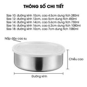 - Size 14: đường kính 14cm, cao 5.6cm dung tích 730ml