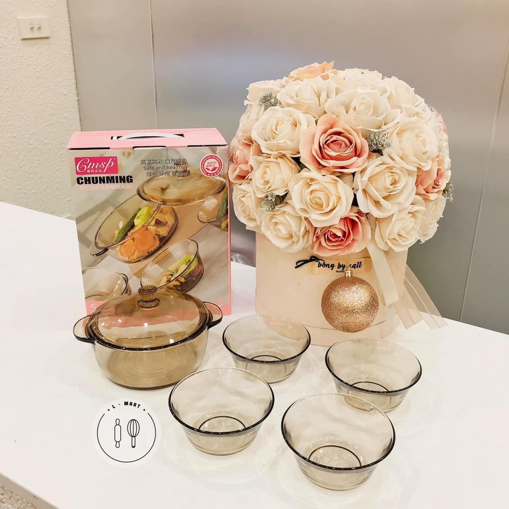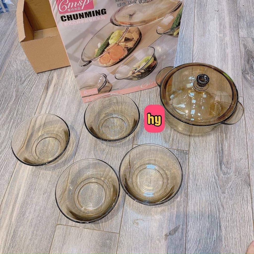 - Set Bát Thủy Tinh Phong Cách Bắc Âu bao gồm: 4 bát nhỏ + 1 bát to có nắp