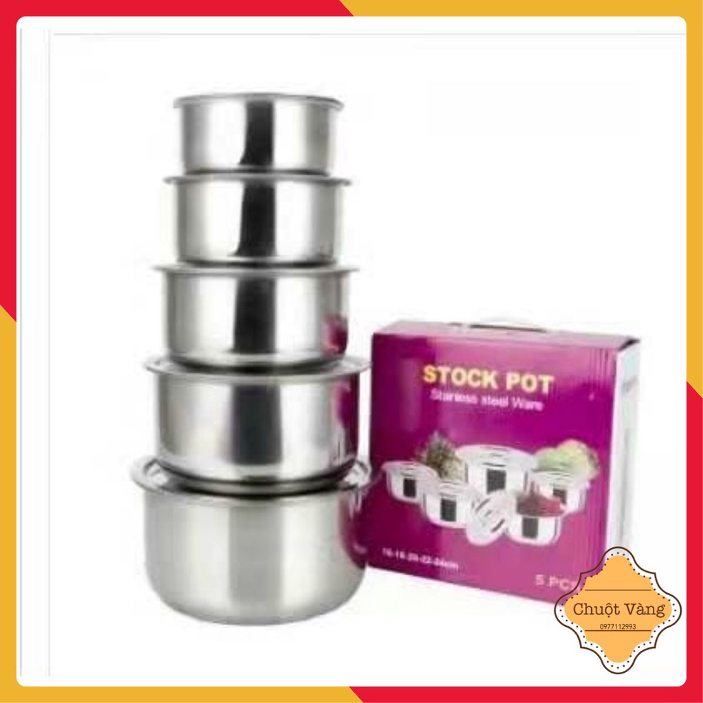 SÉT 5 BÁT TÔ INOX KÈM NẮP ĐẬY DÙNG ĐƯỢC BẾP TỪ