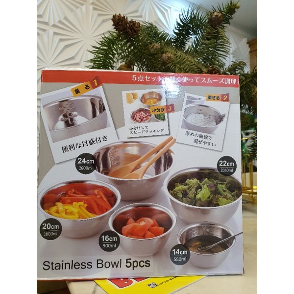 Nhà cửa & Đời sống > Bộ đồ bàn ăn > Tô || Sét 5 Bát Trộn inox có chia vạch hàng xuất NhậtCòn hàng