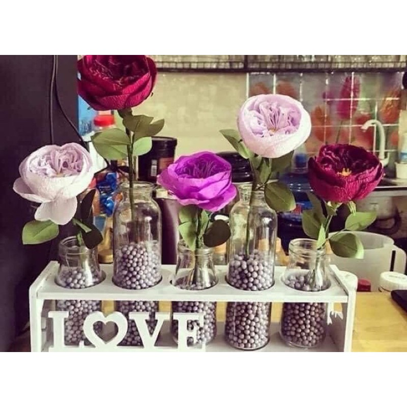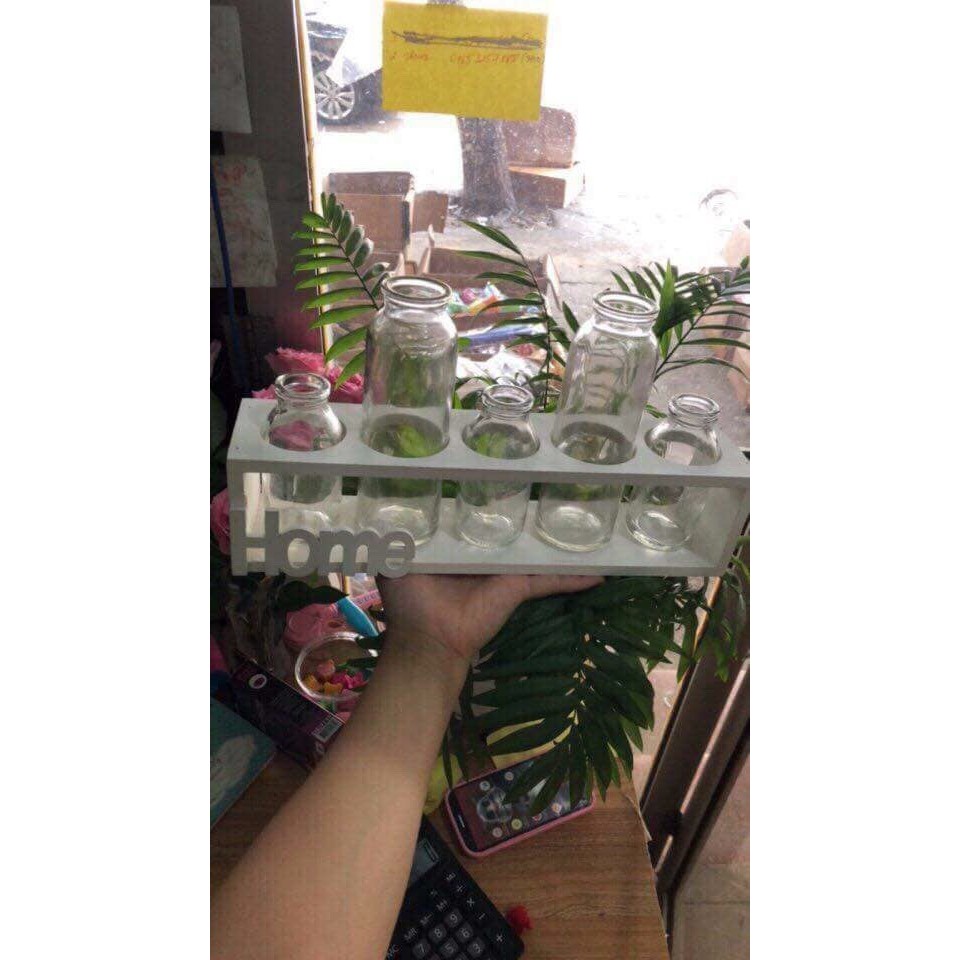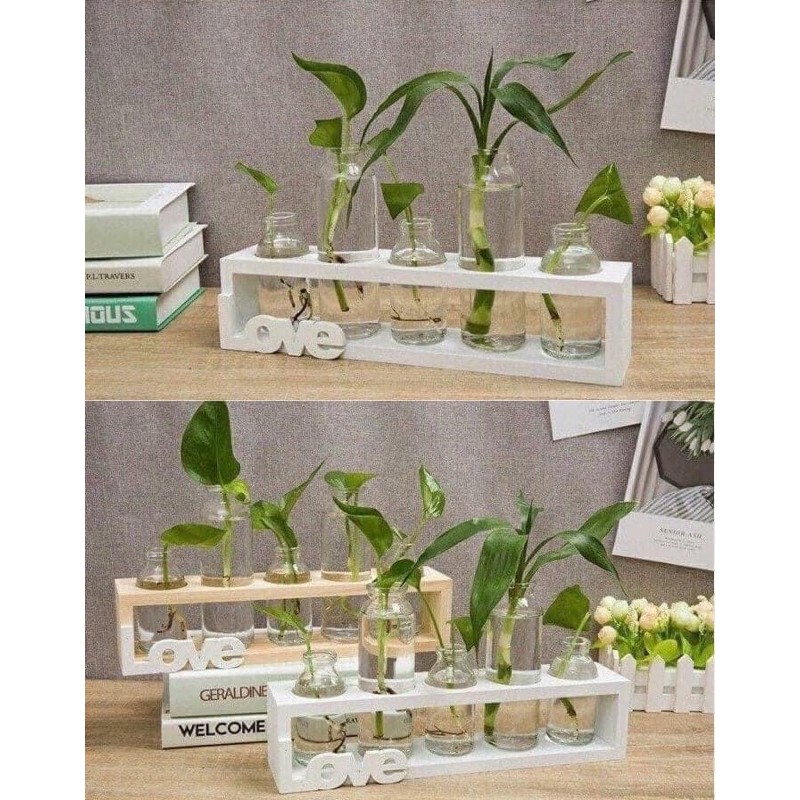Set 5 lọ thủy tinh cắm hoa kèm kệ gỗ Love - Home