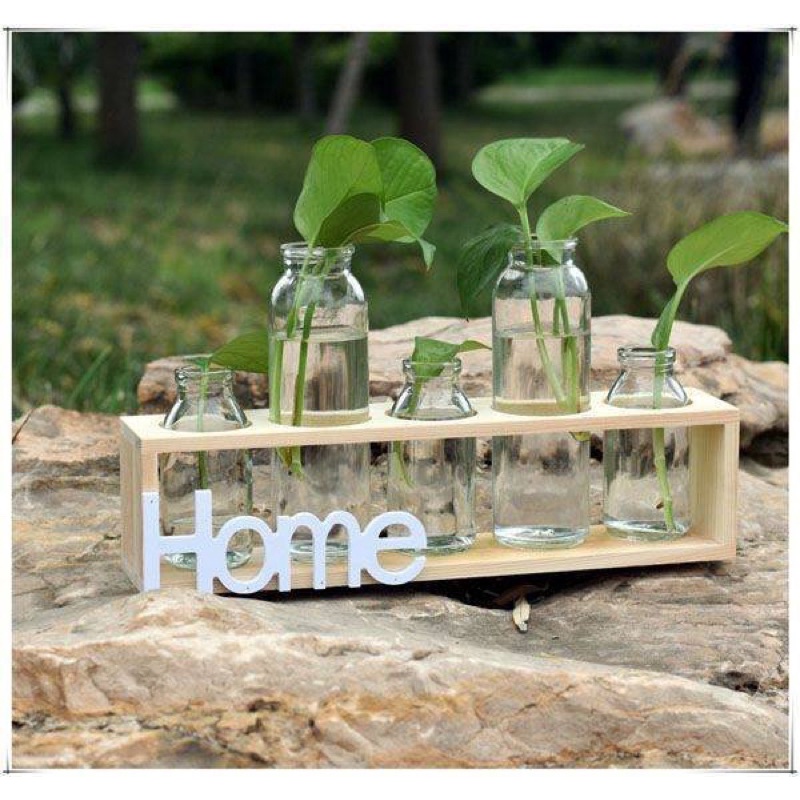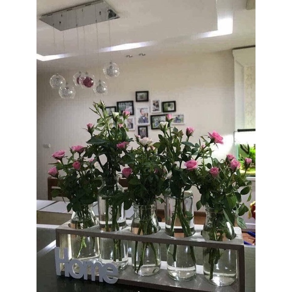 ✔️Set 5 lọ thủy tinh cắm hoa phong thủy kèm giá gỗ