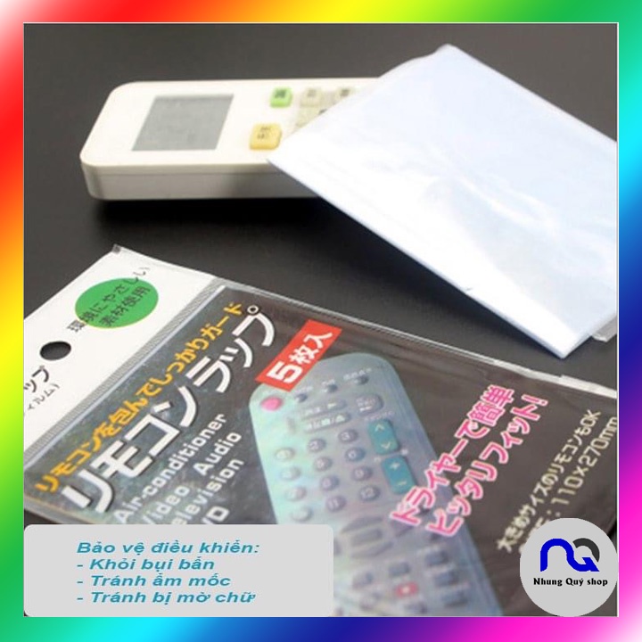 • Set 5 Màng Bọc Điều Khiển Hút Chân Không mềm ôm gọn điều khiển, dễ cầm, bảo vệ điều khiển ti vi, đầu DVD, điều hòa khỏi bụi bặm, ẩm mốc, và bị mờ chữ.