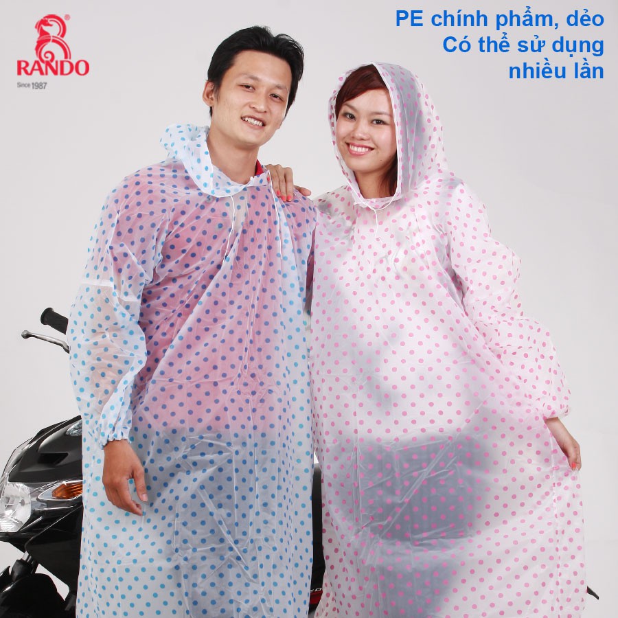 Chất liệu PE vân chấm bi trong mờ thời trang, độ trượt nước tốt, mịn màng, siêu nhẹ, dễ dàng mang theo bên mình mọi lúc mọi nơi trong những ngày mưa, đường ép tỉ mỉ giúp chống nước an toàn