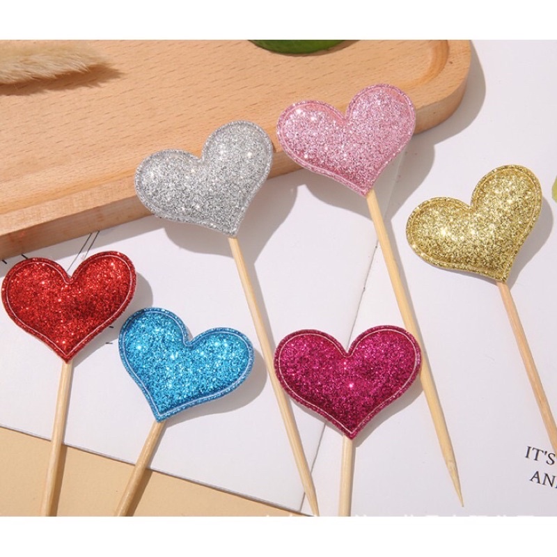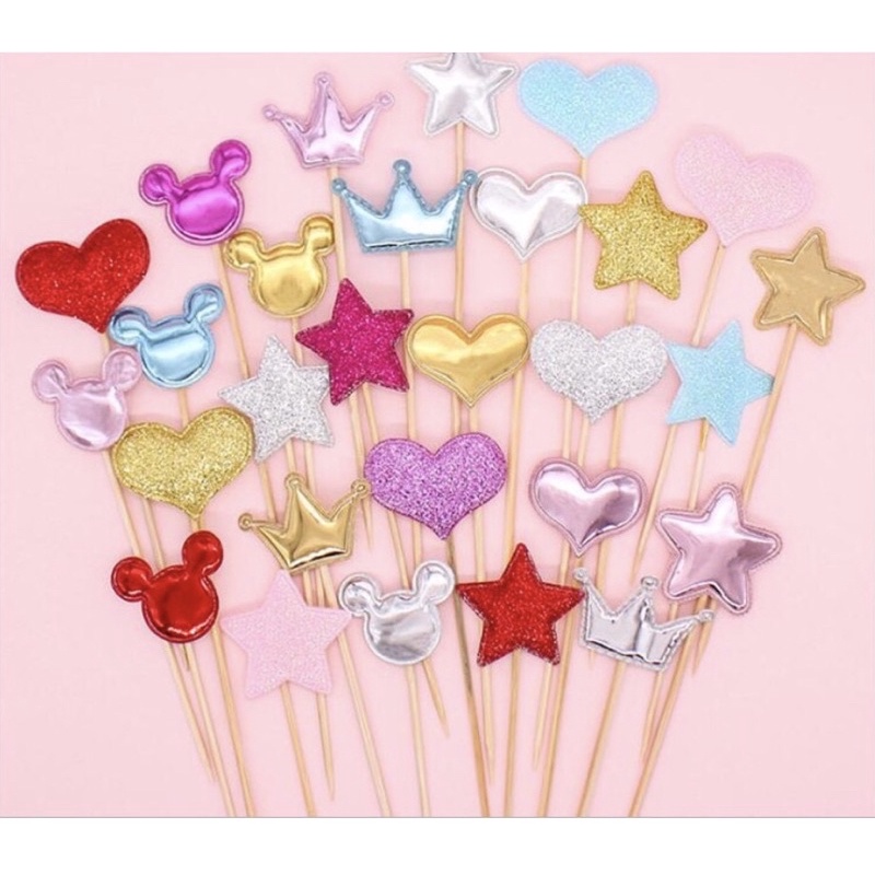 Túi 5 que cắm tim sao trang trí bánh sinh nhật, topper cake- Lưu ý: Shop giao màu ngẫu nhiên