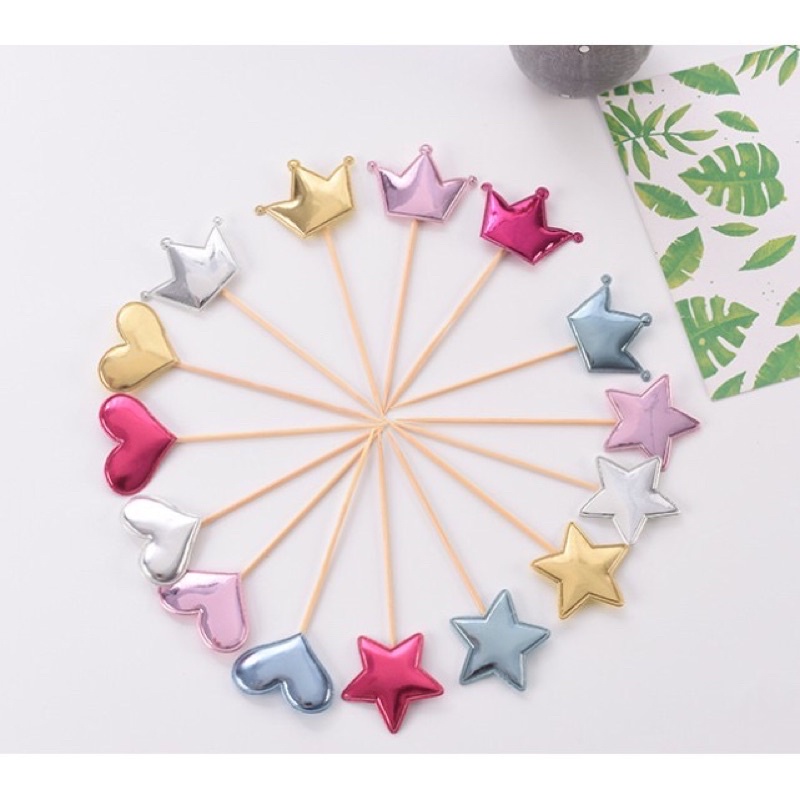 Nhà cửa & Đời sống > Dụng cụ nhà bếp > Dụng cụ nướng & trang trí bánh || Set 5 cây cắm tim sao vương miện trang trí bánh sinh NhậtCòn hàng