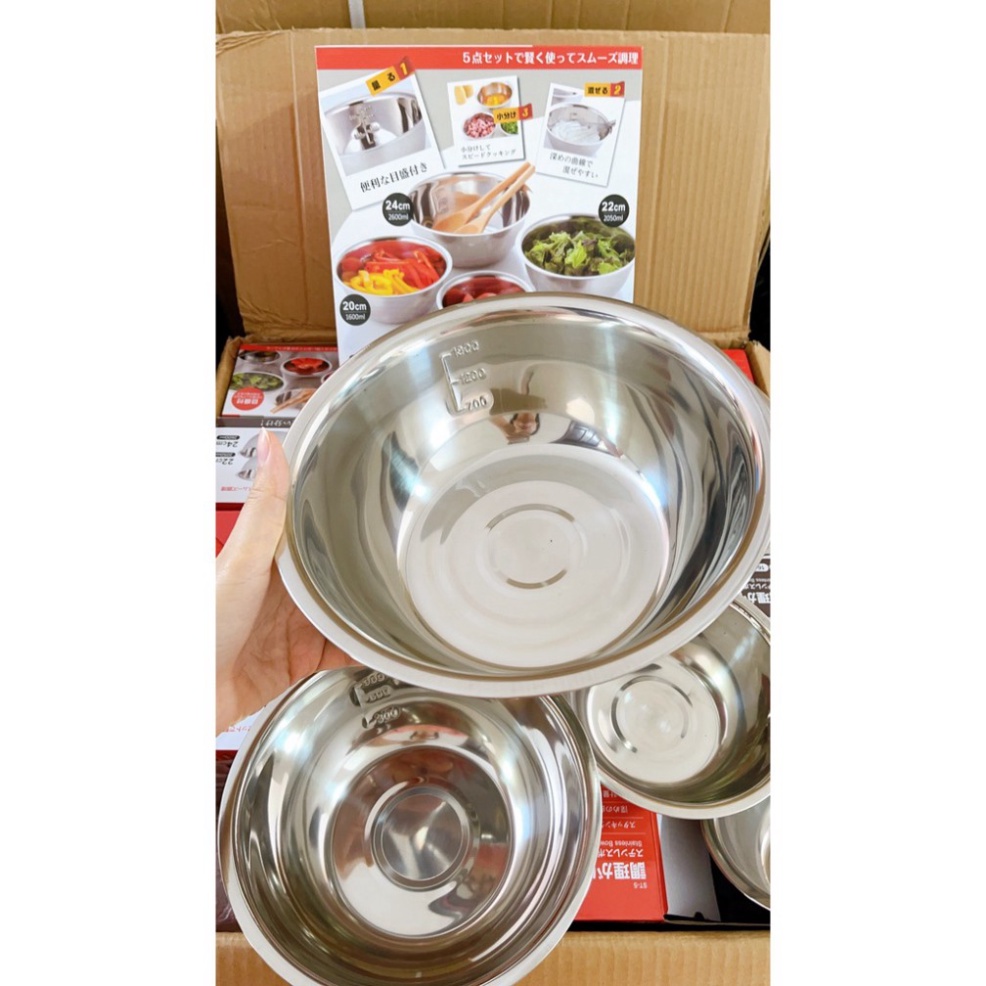 Sét 5 chậu inox xuất Nhật siêu dày dặn