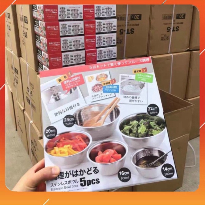 SET 5 CHẬU INOX XUẤT NHẬT SIÊU TIỆN ÍCH MẪU MỚI DÀY DẶN