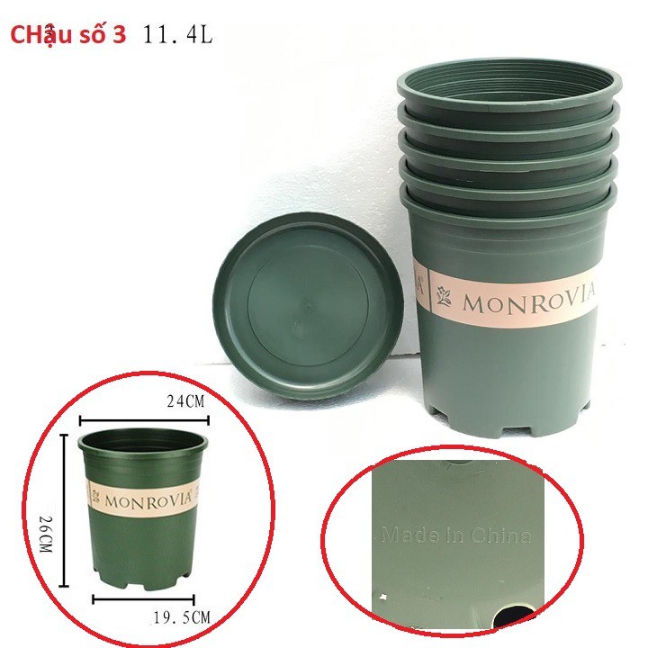 Set 5 chậu nhựa trồng cây Monrovia cỡ số 3 xuất xứ Trung Quốc