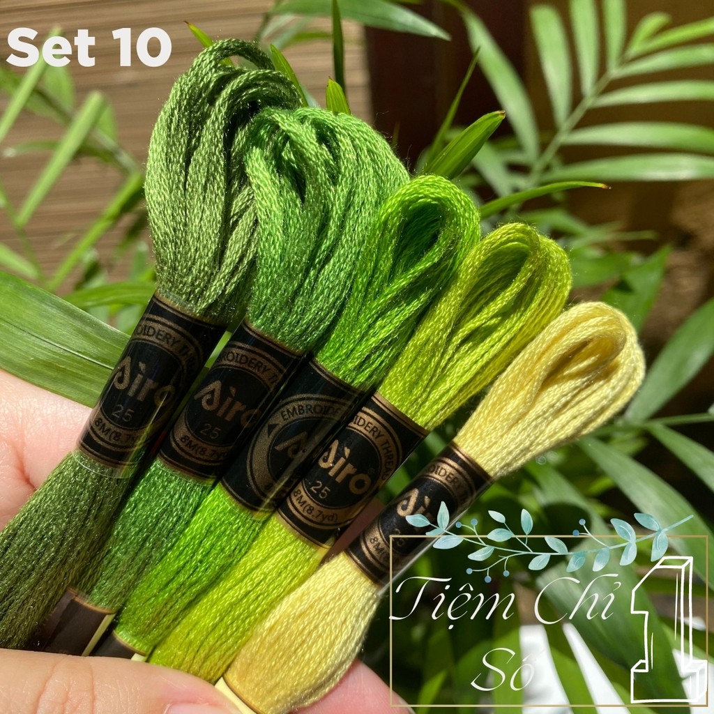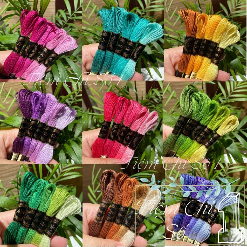 Chỉ thêu cotton Airo của hãng Cherish, một trong những hãng chỉ thêu tốt nhất của Trung Quốc. Chỉ của hãng Airo được làm từ sợi eco- cotton nên có rất nhiều ưu điểm vượt trội so với chỉ cotton thông thường. Chỉ Airo sáng mượt, bóng hơn, không phai và ít xù, nếu so với giá tiền thì thực sự là chất lượng vượt trội so với các hãng chỉ khác. Vậy nên mọi người yên tâm về chất lượng nha.Set chỉ gồm 5 màu chỉ đã được mix theo tông rất đẹp, đúng như hình chụp ( thực ra bên ngoài đẹp hơn nhiều mọi người ạ ). Có tất cả 18 tông màu để mọi người lựa chọn. Nếu mua số lượng nhiều bạn chọn phân loại inbox màu và inbox set màu cho Tiệm nha