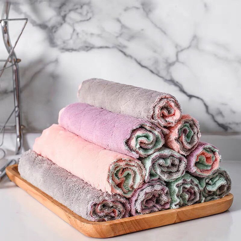Set 5 Chiếc Khăn Lau Bếp Đa Năng 2 Mặt Siêu Thấm Hút Mềm Mại Lau Tay Lau Cốc Chén Đĩa Nhà Bếp Tiện Lợi Sử Dụng Nhiều Lần