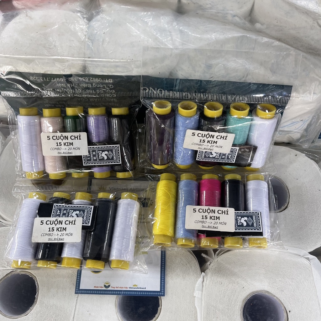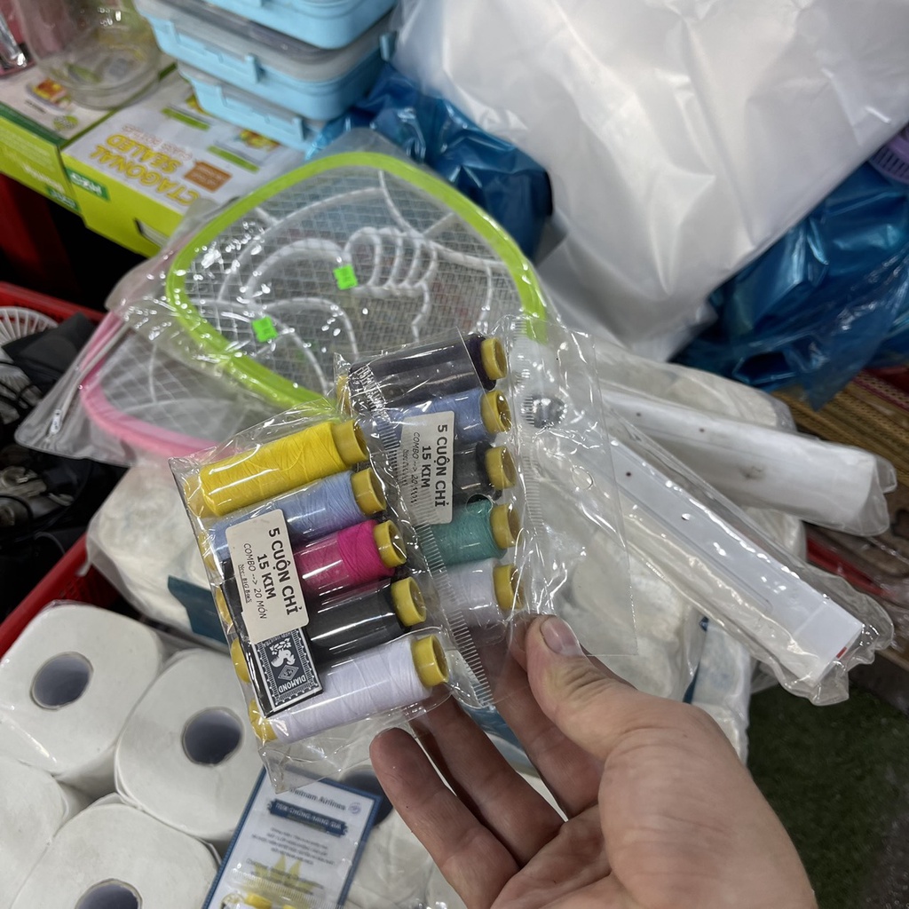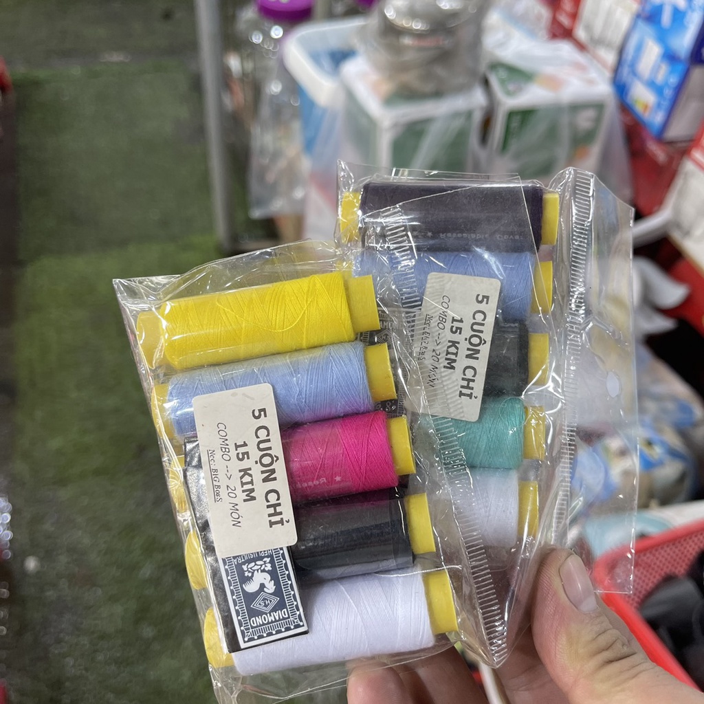 -Sản phẩm gồm 5 cuộn chỉ khác màu và 15 cây kim khâu .