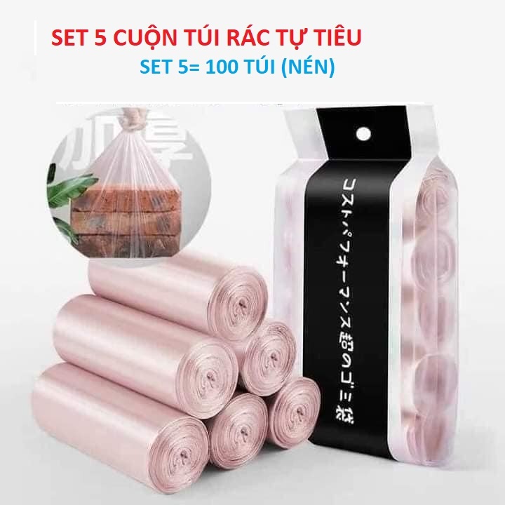 Set 5 Cuộn Rác Tự Tiêu Nhật ( Set 5= 100 Túi) Tự Hủy Sinh Học