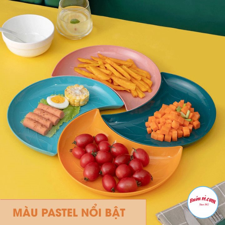 Nhà cửa & Đời sống > Bộ đồ bàn ăn > Dĩa || Set 5 đĩa nhựa hình bán nguyệt xếp hình hoa đựng hoa quả - Đĩa nhựa bán nguyệt màu Pastel trang trí bàn ăn 01485Còn hàng