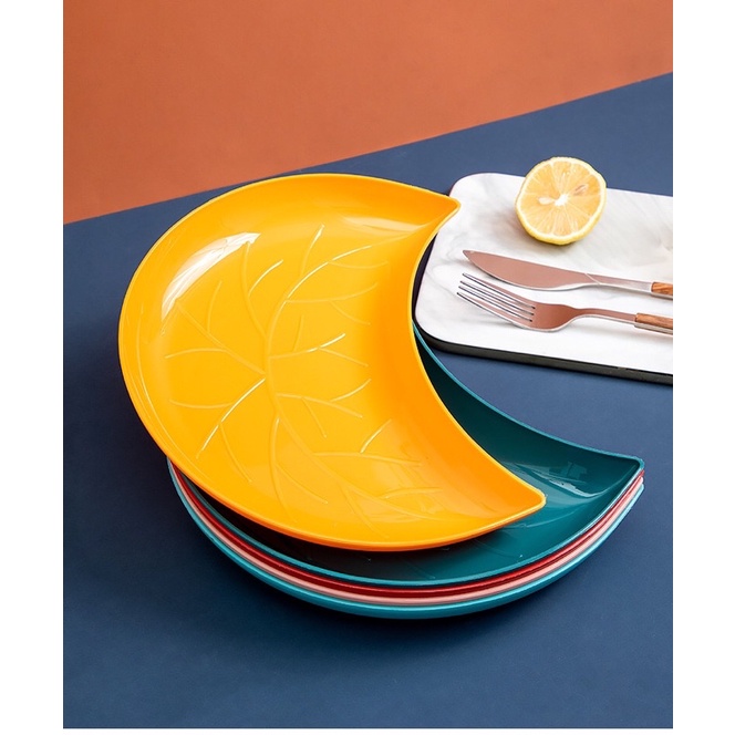 Set 5 dĩa nhựa hình bán nguyệt đựng trái cây hoa quả bánh kẹo trang trí bàn ăn - Bộ 5 dĩa nhiều màu decor siêu xinh