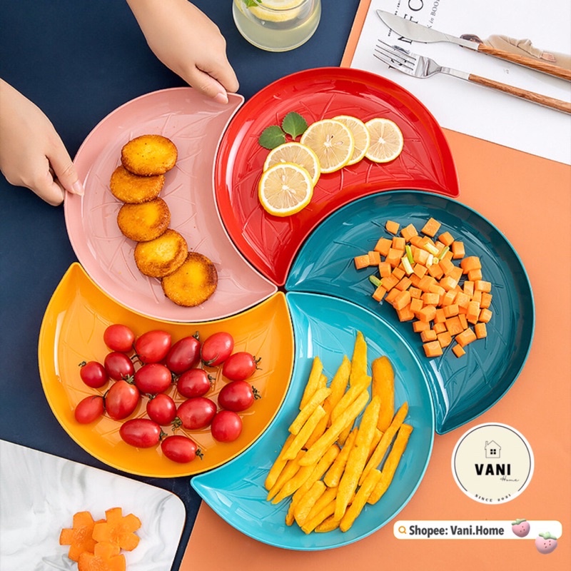 Nhà cửa & Đời sống > Bộ đồ bàn ăn > Dĩa || Set 5 dĩa nhựa hình bán nguyệt đựng trái cây hoa quả bánh kẹo trang trí bàn ăn - Bộ 5 dĩa nhiều màu decor siêu xinhCòn hàng