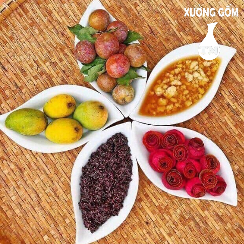 Nhà cửa & Đời sống > Bộ đồ bàn ăn > Dĩa || Set 5 đĩa thuyền cánh hoa sứ trắng gốm sứ Xưởng Gốm TM Bát Tràng + Tặng kèm bát mắmCòn hàng