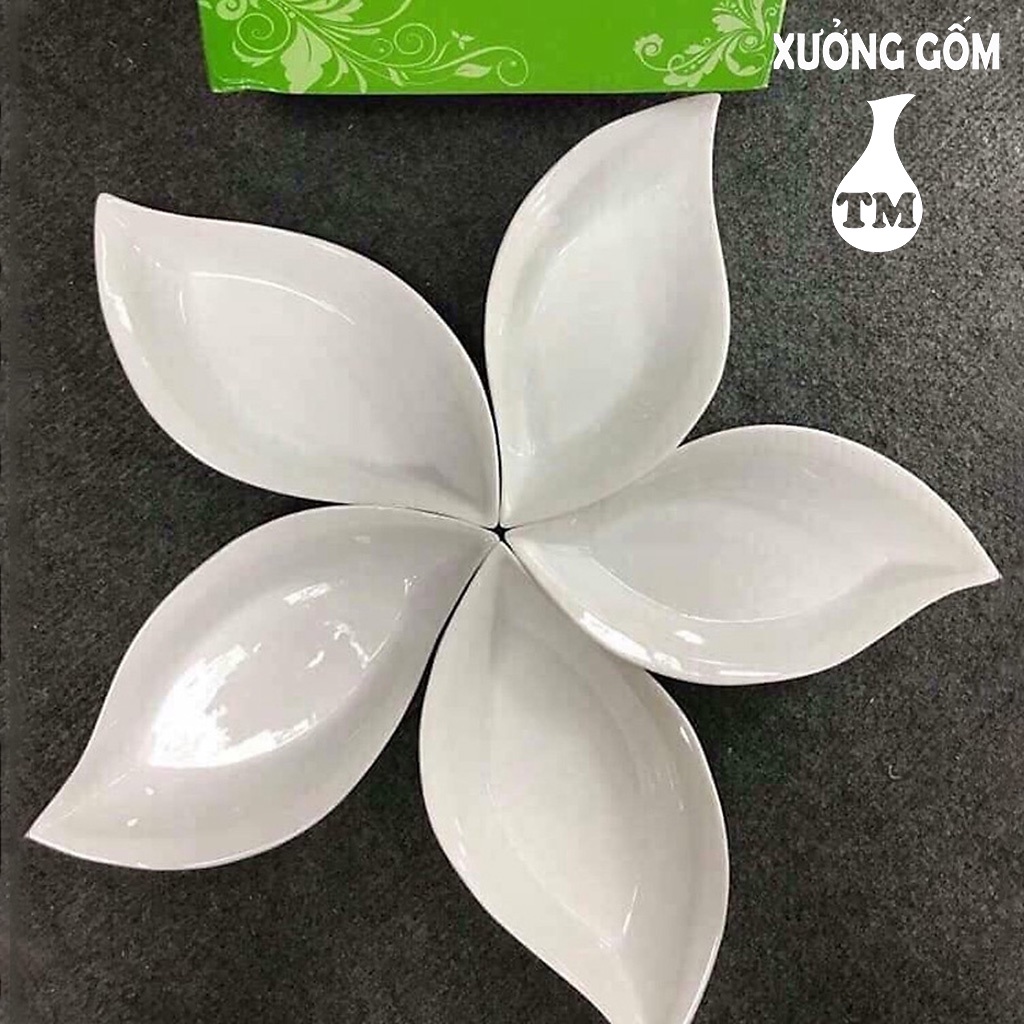 Set 5 đĩa thuyền cánh hoa sứ trắng gốm sứ Xưởng Gốm TM Bát Tràng + Tặng kèm bát mắm