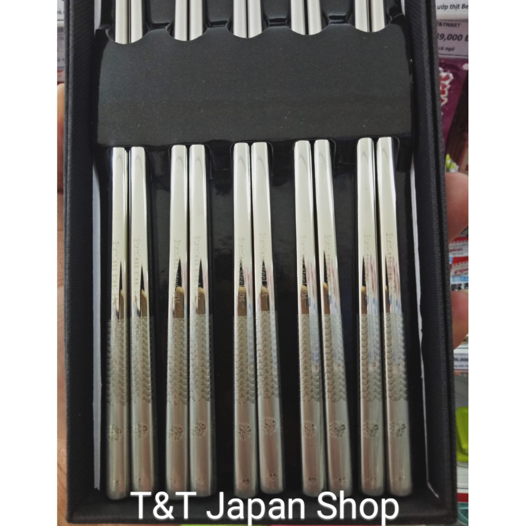 Set 5 đôi đũa họa tiết inox 304 đặc ruột Nhật