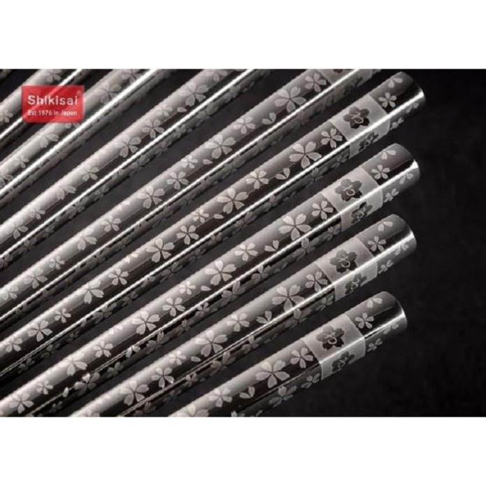 Set 5 đôi đũa inox 304 cao cấp hoa anh đào thương hiệu shikisai 1189