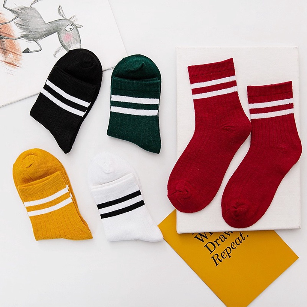 Điện Thoại & Phụ Kiện > Khác || Set 5 Đôi tất Sọc cổ cao mix 5 màu chất cotton phối lenCòn hàng