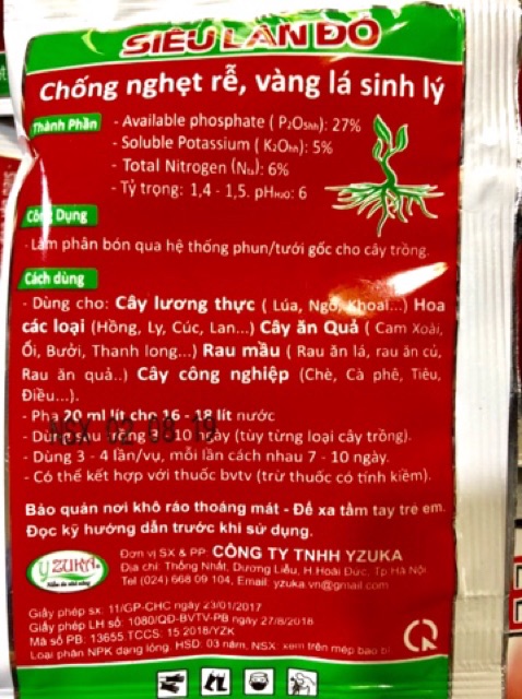 Phân bón lá cao cấp SIÊU LÂN ĐỎ giúp cây ra rễ nhanh, chống rét, chịu hạn, giải độc thuốc BVTV , tăng khả năng đề kháng vàng lá, xoăn lá...