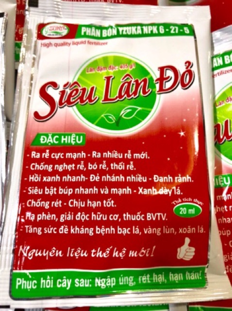 SET 5 GÓI PHÂN BÓN LÁ CAO CẤP SIÊU LÂN ĐỎSố lượng : 5 gói (20ml/gói)