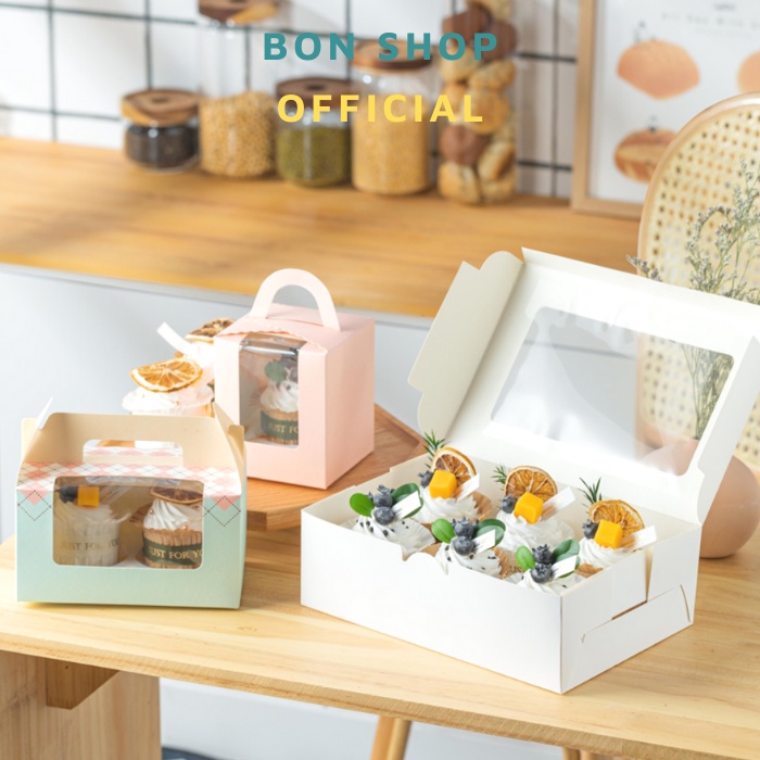 Hộp giấy cao cấp và sang trọng đựng bánh Cupcake có cửa sổ trong suốtVới chiếc đế rời, bạn có thể dễ dàng biến tấu hộp thành hộp đựng Quà Tặng, đựng Bánh Cookie và vô số các công dụng khác