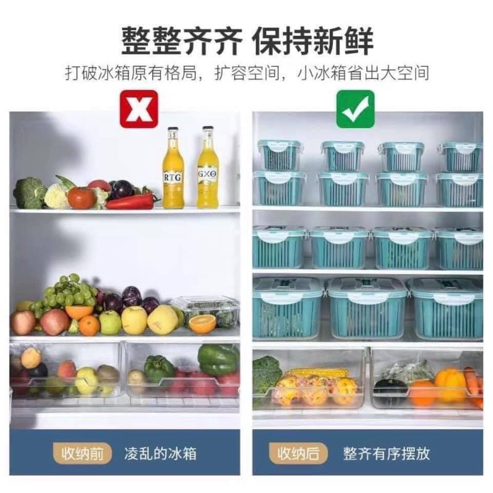 - Chất liệu cứng cáp , tiện lợi , dùng đựng rau củ quả , thức ăn, thực phẩm ...treo trong tủ lạnh, vừa bảo quản được thực phẩm luôn tươi mới, không lo tủ lạnh bị ám mùi vì có nắp đậy kín hút chân không , vừa tiết kiệm diện tích nên tủ lạnh trông rất gọn gàng và đẹp mắt nữa ạ