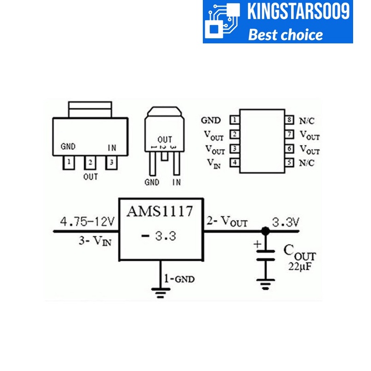 Giới thiệu Set 5 IC ổn áp nguồn AMS1117 3.3V SOT-223