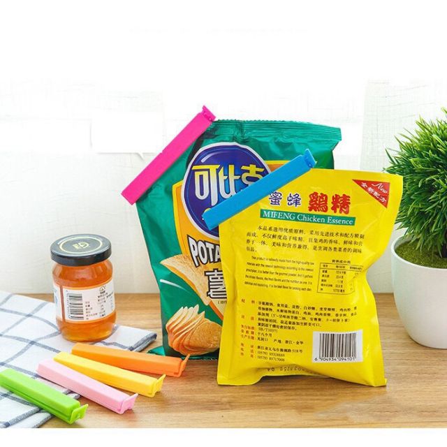- Kẹp miệng túi bằng nhựa nhiều màu tiện dụng với thiết kế đơn giản, dễ sử dụng giúp bảo vệ thực phẩm một cách an toàn nhất, giữ độ tươi ngon, tránh nhiễm vi khuẩn, ẩm mốc.- Kẹp miệng túi sử dụng chưa hết như gia vị, đồ ăn ... một cách gọn gàng.