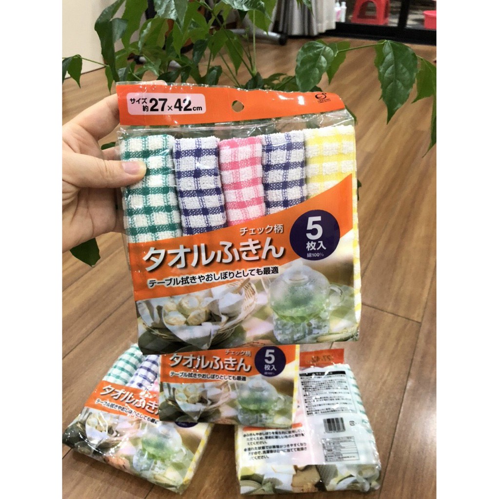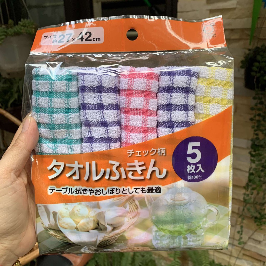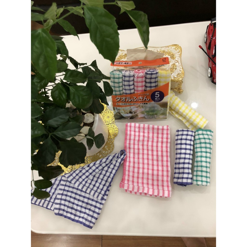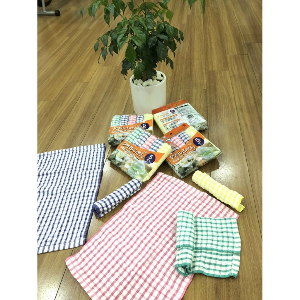 Nhà cửa & Đời sống > Dụng cụ chăm sóc nhà cửa > Khăn vệ sinh || Set 5 khăn lau kẻ 100% Cotton 27x42cm OKAZAKI Nhật BảnCòn hàng