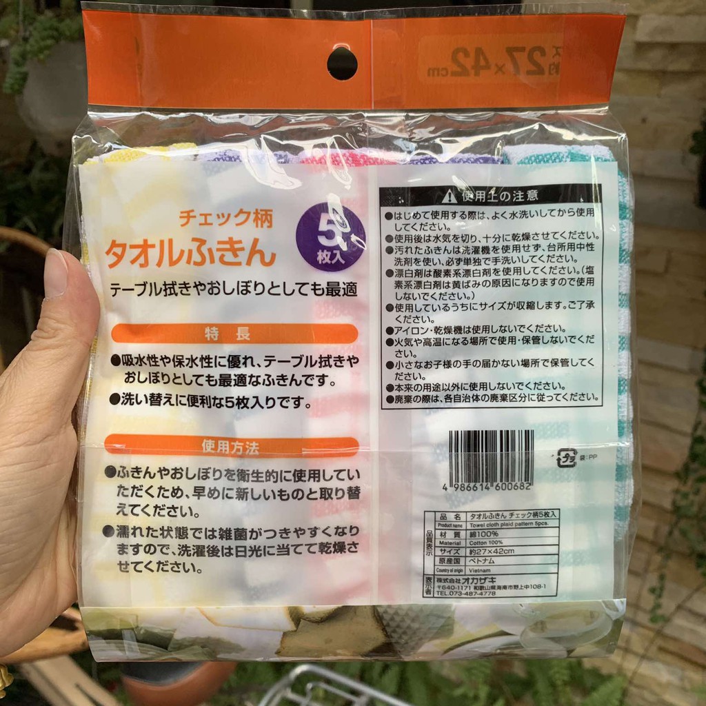 Giới thiệu Set 5 khăn lau kẻ 100% Cotton 27x42cm OKAZAKI Nhật Bản
