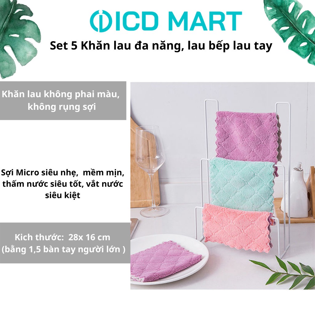 Set 5 khăn lau tay nhà bếp Siêu Thấm, kích thước 16x 28 cm/ chiếc, dùng lau bếp lau tay, lau đĩa