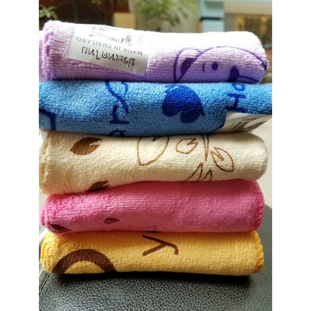 Bộ 5 khăn mặt 5 màu Thái lan được làm bằng chất liệu sợi microfiber cực mềm không làm hại da, thấm hút, kháng khuẩn tốt, mang đến cảm giác êm ái, nhẹ nhàng khi dùng cho da, kể cả da khô và da nhạy cảm.Chỉ cần đưa tay sờ nhẹ lên mặt khăn, bạn sẽ cảm thấy sự mịn màng và mềm mại khác hẳn so với những sản phẩm khác.- Kích thước : 24x45cm