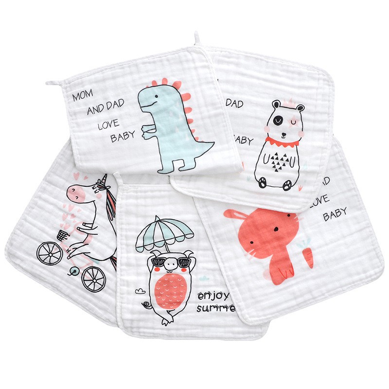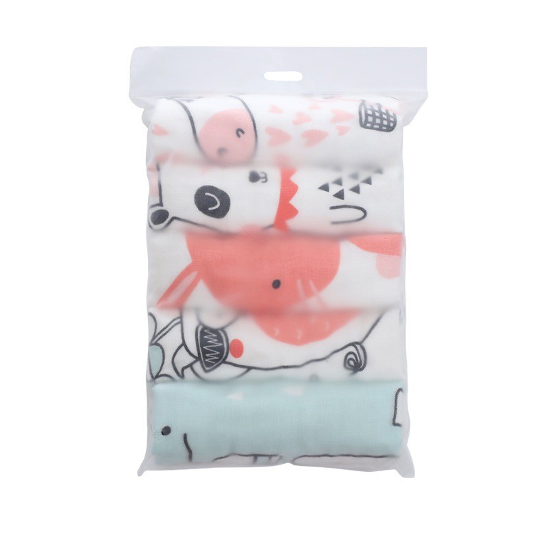 Set 5 khăn xô 6 lớp dày dặn thấm hút cực kỳ tốt. Sản phẩm đóng trong túi zip xinh xắn làm quà tặng cũng rất ok.- Kích thước 30 x 30 cm phù hợp dùng cho bé.