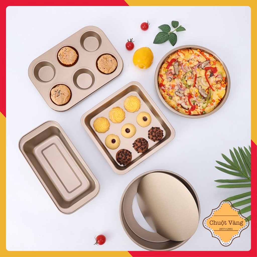 ✅Set 5 khay gồm: 2 khuôn tròn, 1 khuôn vuông, 1 khuôn bánh mì gối và 1 khuôn Cupcake 6 lỗ.