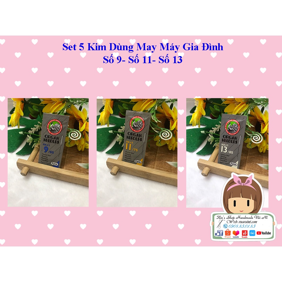 🍓Set 5 Kim Dùng Cho Máy May Gia Đình Số 9-11-13 Kim bền đẹp chất lượng dùng trong may mặc phụ liệu may🍓Kim máy may gia đình nhiều size trong phân loại, hàng Organ sản xuất tại Việt Nam, hàng chất lượng, kim bền chắc