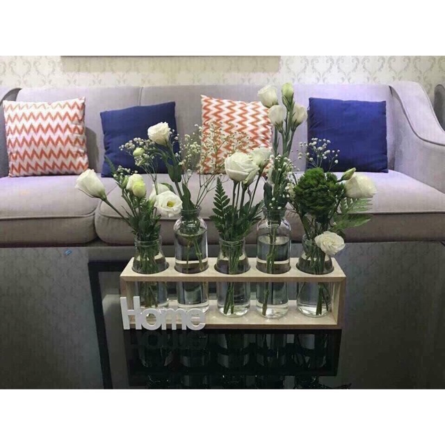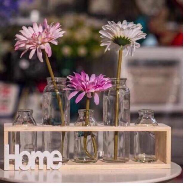 Nhà cửa & Đời sống > Trang trí nhà cửa > Bình trang trí || Set 5 lọ cắm hoa tặng kèm kệ gỗCòn hàng