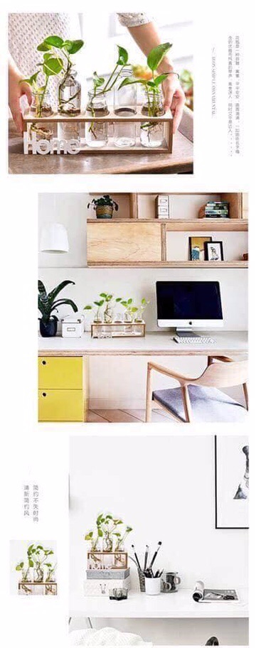 Nhà cửa & Đời sống > Trang trí nhà cửa > Bình trang trí || Set 5 lọ cắm hoa thuỷ tinh ( kèm kệ gỗ)Còn hàng