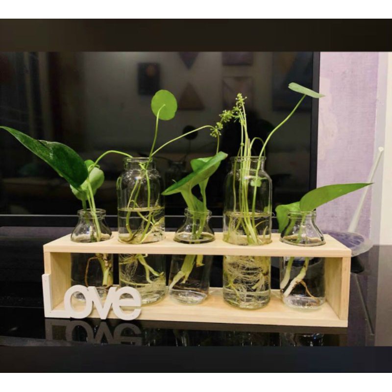 🍒Lọ hoa gì mà đẹp thế?❤️❤️❤️ Set 5 lọ thủy tinh cắm hoa kèm kệ gỗ sang trọng về hàng ( LOẠI CHỮ LOVE)