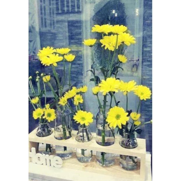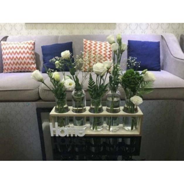Nhà cửa & Đời sống > Trang trí nhà cửa > Bình trang trí || Set 5 lọ thủy tinh cao thấp cắm hoa kèm kệ gỗ Home.Còn hàng