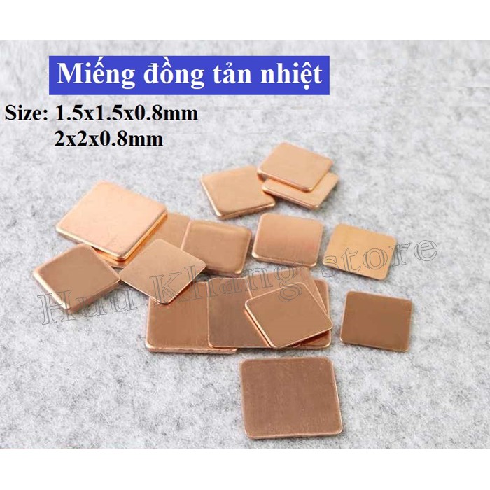 - Làm từ đồng nguyên chất đặc biệt có độ dẫn nhiệt cao gấp nhiều lần đồng thông thường- Miếng đồng có kích thước (1.5*1.5*0.8mm) vừa với kích thước ic thông dụng điện thoại giúp ta đặt mặt sau khi khò các loại ic chống phù, sốc nhiệt hay làm mát cpu máy tính