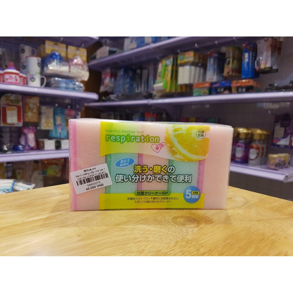 Nhà cửa & Đời sống > Dụng cụ chăm sóc nhà cửa > Miếng bọt biển, miếng chà vệ sinh || Set 5 miếng xốp rửa bát 1 mặt ráp (made in Japan) có thể đánh rửa xoong nồiCòn hàng