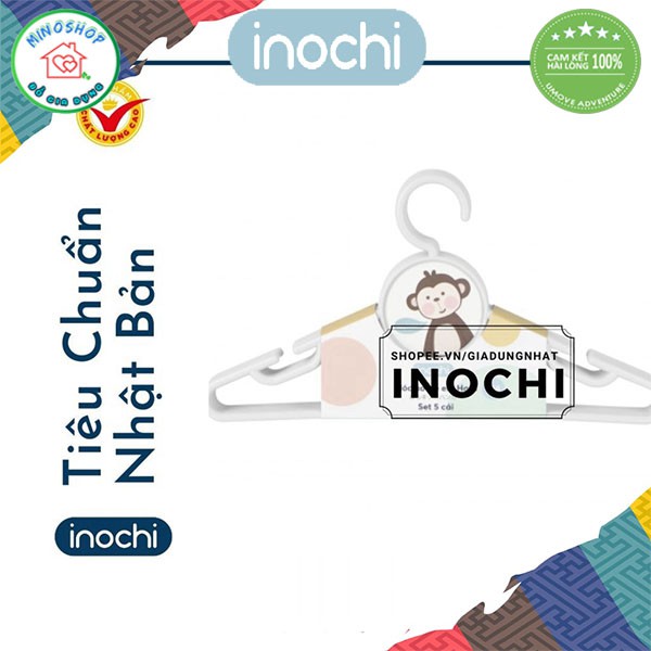 [Sét 5] Móc Áo Trẻ Em Bền Đẹp, Móc Quần Áo Nhựa Hara 188 Inochi Chính Hãng