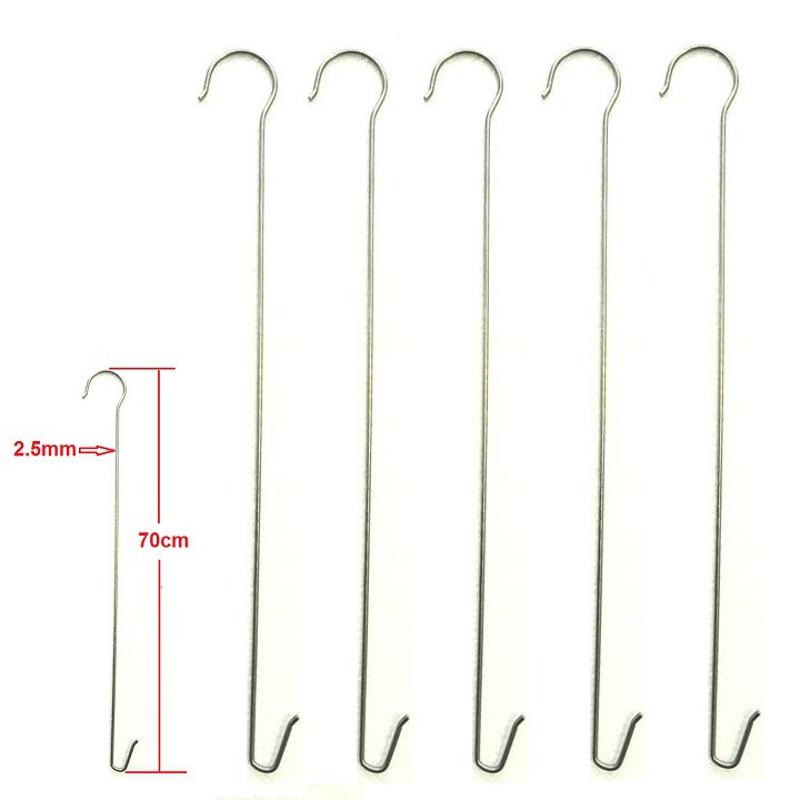 Set 5 móc inox 2 đầu treo chậu hoa lan, cây hoa cảnh dài 70cm