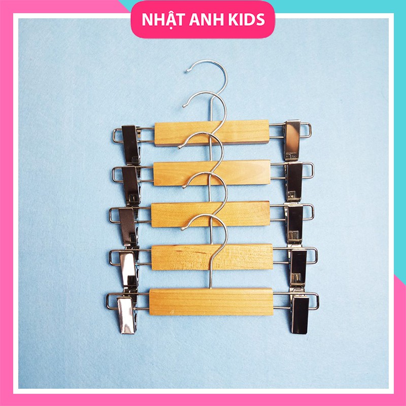 Nhà cửa & Đời sống > Sắp xếp nhà cửa > Mắc áo || Set 5 Móc kẹp 2 đầu quần áo trẻ em, màu gỗ tự nhiên bền đẹpCòn hàng