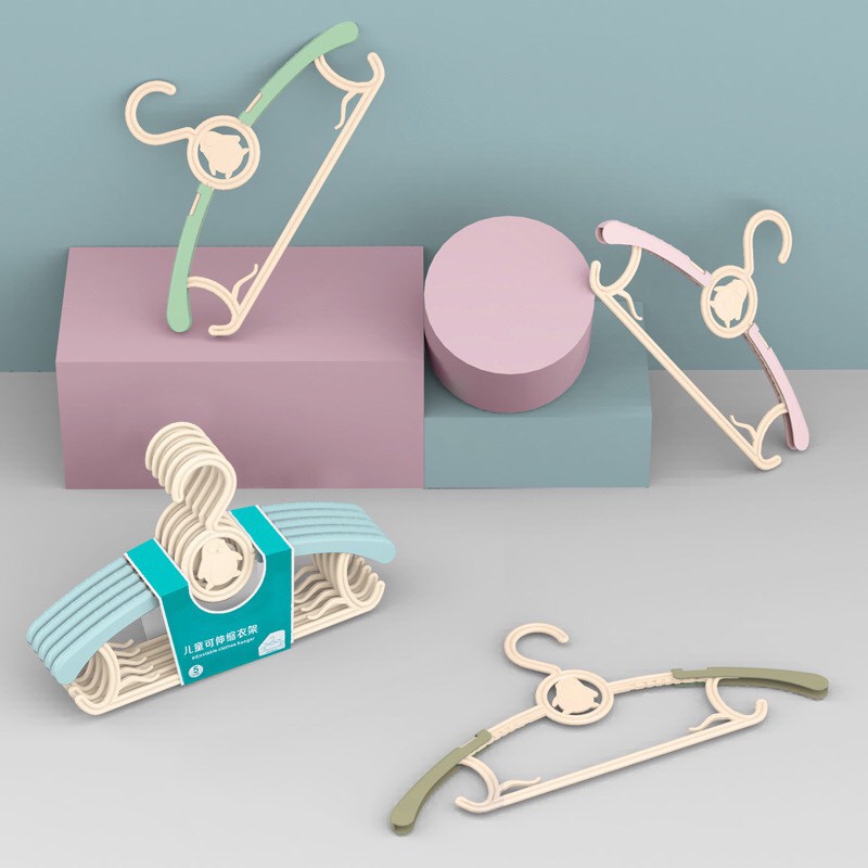 Combo 5 móc phơi quần áo trẻ em Bei Yiqi có thể điều chỉnh to nhỏ cho móc phù hợp mới các kích cỡ quần áo của trẻ conĐặc điểm :