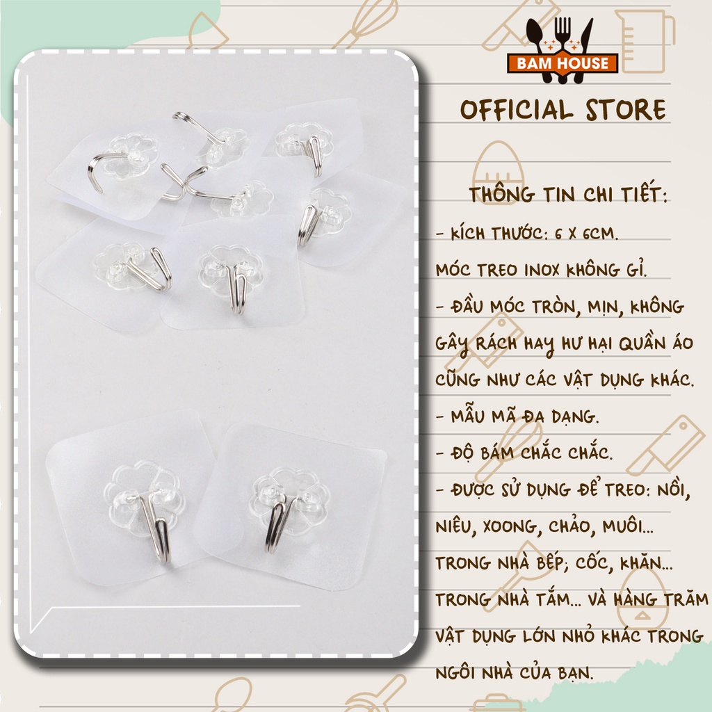 Nhà cửa & Đời sống > Sắp xếp nhà cửa > Móc treo || [Mã LIFEMALL991 giảm 10% đơn 99K] Set 5 móc treo dán tường cường lực Bam House trong suốt cao cấp TS01 – BamBam StoreCòn hàng